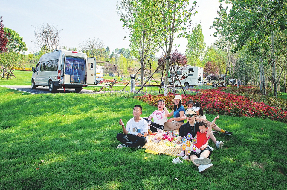不僅民宿迎來眾多客流,各景區(qū)的露營活動也吸引了大量避暑游客。在圣天湖景區(qū)的房車帳篷營地,游客可以在此開展房車露營、燒烤、自助特色餐飲、草坪親子、篝火晚會等多種活動。