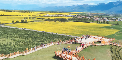 7月,青海省門源回族自治縣油菜花綻放,一蓬蓬、一簇簇迎風(fēng)舞動,宛如金色的海洋。付 利攝