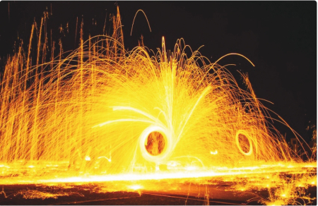 “打鐵花”是一種民俗文化表演技藝,工匠師傅們將融化的鐵水拍打到空中,便形成了狀如煙花的扇形金色火花。晉城的司徒小鎮(zhèn),是一個融合了山西民俗、美食、文化、創(chuàng)意集市的寶地,這里不僅有澤州鐵器、老粗布等富有文化內(nèi)涵的店鋪,還有油坊、醋坊、豆腐坊等年代感十足的老作坊。而最令人震撼的,當(dāng)然就是打鐵花了!在夜空下,飛濺的鐵花如同煙花般璀璨奪目,氣勢磅礴,場面蔚為壯觀。漫步在古色古香的小鎮(zhèn),一邊欣賞震撼人心的千人打鐵花表演,一邊感受穿越千年的山西味道,讓人流連忘返。