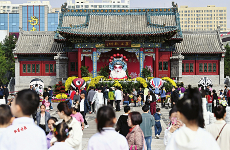 省城不少市民也選擇了“家門口的旅游”,國慶假期也是踏園賞菊的好時節(jié),太原市第三十四屆菊花展的主會場——雙塔公園,打造了7000平方米的賞花區(qū),10余萬株各類菊花競相開放。走進雙塔公園,首先映入眼簾的是色彩斑斕的菊花展,公園內(nèi)精心布置的“祝福祖國”、“錦繡梨園”等主題花壇,仿佛將秋天的色彩搬到了這里,為豐富展覽內(nèi)容形式,公園同時舉辦迎國慶剪紙文創(chuàng)展、中華姓氏家訓家風展、古裝花船游等活動,為廣大游客帶來豐富的游覽體驗。