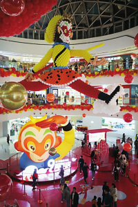 1.在解放路萬達廣場內(nèi),兩個巨大的1961年版《大鬧天宮》美猴王造型吸引眾多市民打卡留念。