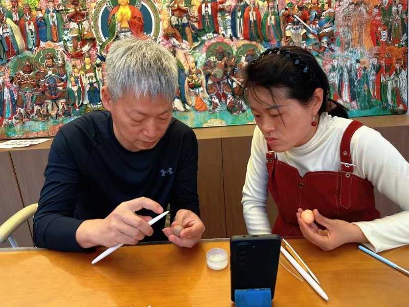 “在這條街上,聚集了很多和我一樣的手藝人?!贝蠛C嫠芩诘年P(guān)帝廟北巷文創(chuàng)街上,一家家非遺店鋪林立——葫蘆烙畫(huà)店鋪內(nèi),忻州市忻府區(qū)葫蘆烙畫(huà)非物質(zhì)文化遺產(chǎn)代表性傳承人李云珍正手拿烙鐵在葫蘆上創(chuàng)作《八駿圖》;“草木染”非遺體驗(yàn)店里,有游客在體驗(yàn)扎染的樂(lè)趣;鋦藝?yán)?,游客圍在忻州市忻府區(qū)鋦瓷藝術(shù)非物質(zhì)文化遺產(chǎn)代表性傳承人王克劍身邊,看一件破碎的瓷器如何經(jīng)過(guò)他的雙手重生……