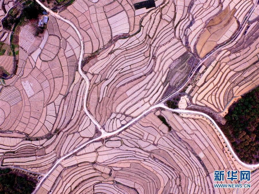 這是3月14日航拍的廣西百色市右江區(qū)永樂鎮(zhèn)西北樂村西瓜梯田景色。時(shí)下,廣西百色市右江區(qū)永樂鎮(zhèn)西北樂村進(jìn)入西瓜種植護(hù)理季節(jié),地膜縱橫交錯(cuò)的層層瓜田和壯族村落構(gòu)成一幅美麗的田園畫卷。百色市右江區(qū)永樂鎮(zhèn)是廣西有名的西瓜之鄉(xiāng),全鎮(zhèn)種植西瓜1.5萬畝,年產(chǎn)西瓜2.8萬噸。新華社記者 黃孝邦 攝