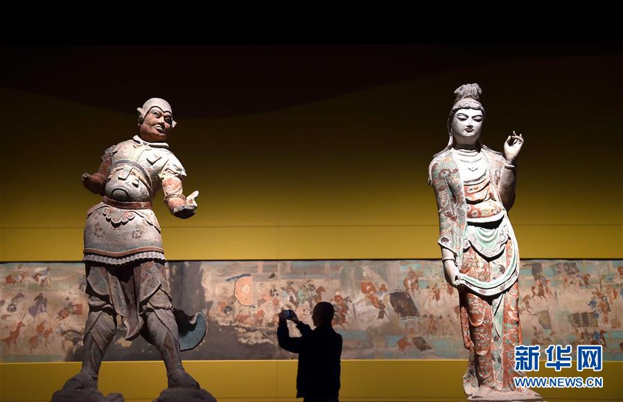 12月26日,觀眾在展覽上參觀。當(dāng)日,“絲路之魂——敦煌藝術(shù)大展暨天府之國與絲綢之路文物特展”在四川成都博物館開幕。本次展覽將持續(xù)到2017年4月10日。 新華社記者薛玉斌 攝