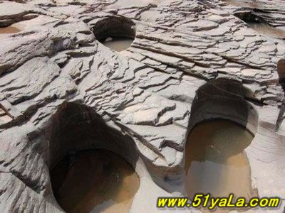 據(jù)考證,這些石窩水洼并非人工所鑿,而是經(jīng)洪水激流數(shù)干年來(lái)沖擊石塊盤旋磨蝕而成,因此,每個(gè)坑從坑沿滑到壁都光滑無(wú)比,而且每個(gè)石窩里都有一個(gè)圓形石頭。明代有人作詩(shī)贊曰:“河底有天涵兔影,山間無(wú)物掩蟾光……因其孟門開寶鏡,嫣娥向晚理殘妝”。