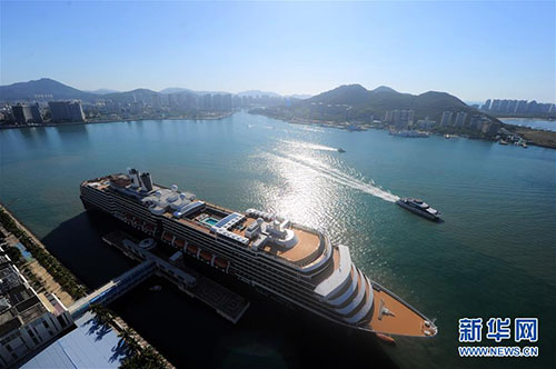 1月31日,“威斯特丹號”停靠在三亞鳳凰島國際郵輪港。 新華社發(fā)(沙曉峰 攝)