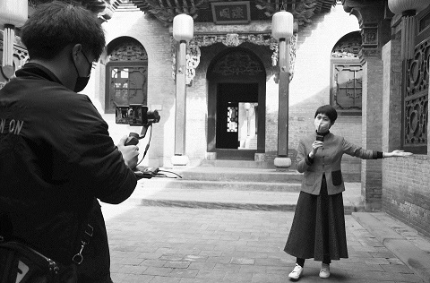 喬家大院景區(qū)導(dǎo)游化身為網(wǎng)絡(luò)主播,帶領(lǐng)觀眾在線探訪喬家大院百年歷史。本報記者 栗美霞 攝