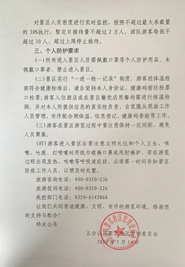 堅(jiān)持將限量作為旅游景區(qū)開(kāi)放管理的前提,在落實(shí)防控措施和預(yù)約、限流的前提下實(shí)施開(kāi)放,堅(jiān)持“無(wú)預(yù)約不旅游”,所有入山人員必須在持有健康碼的基礎(chǔ)上,憑本人身份證線上實(shí)名預(yù)約,未經(jīng)過(guò)預(yù)約的一律不予接待。