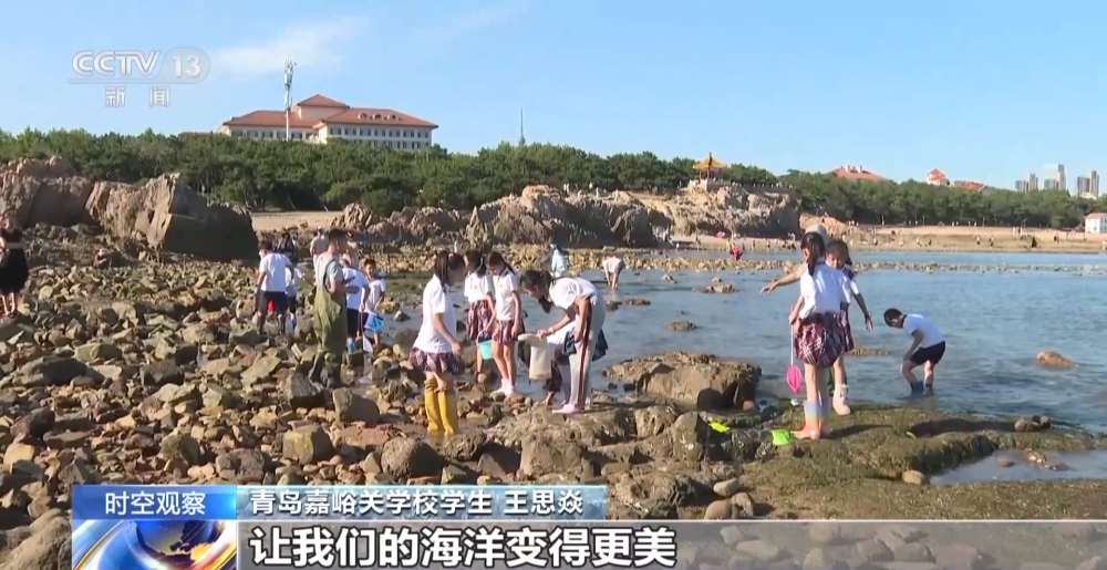 在青島第二海水浴場,中國海洋科學(xué)研究所的科研人員帶領(lǐng)著研學(xué)團的學(xué)生在海洋潮間帶認識、采集海藻。隨后孩子們在老師指導(dǎo)下對藻類進行鑒定、清洗、制作藻類臘葉標本,聽專家科普海洋知識。