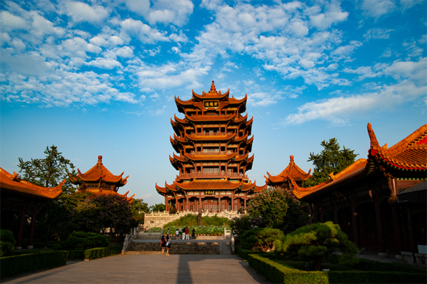藍(lán)天白云下的黃鶴樓公園