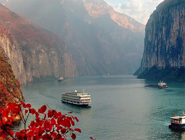 游船駛過秀美的長(zhǎng)江三峽