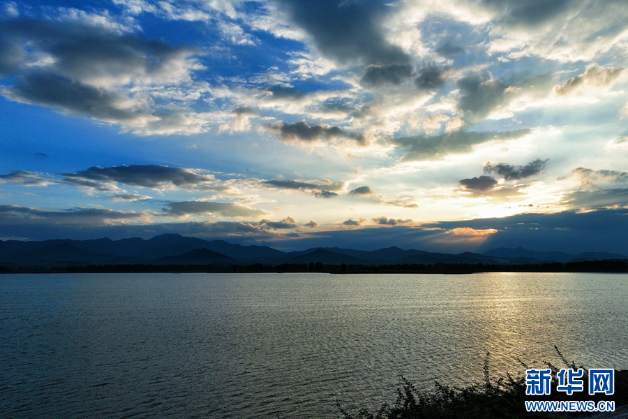 7月27日,在河南省鎮(zhèn)平縣高丘水庫拍攝的朝霞。