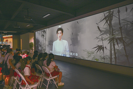 王維“數(shù)字人”正在與研學(xué)的小朋友進(jìn)行互動。吳遵民攝
