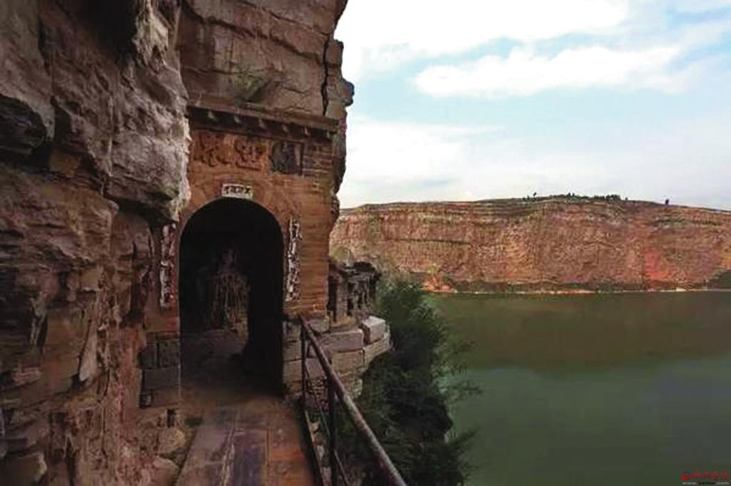 沿著石壁繼續(xù)下行十多米,眼前出現(xiàn)一條羊腸小道,小道中途還有座獨木橋,橋的一端建有石門,門上刻“懸空界”三字,穿過石門便是聞名天下的彌佛洞。彌佛洞建在黃河峽谷絕壁上的一個天然石窟之中,洞內(nèi)怪石倒垂,犬牙交錯,人至其中如入虎口。從石洞后壁登23級石階,又有一石窟,高約兩丈,內(nèi)供佛像一尊。彌佛洞憑借雄渾壯觀的自然景觀給人們留下深刻印象,中國當代著名畫家吳冠中先生觀后稱其為“黃河上的一大奇跡景觀”。