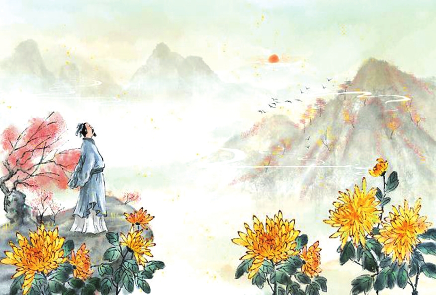 東晉詩人陶淵明在《九日閑居》一詩序文中曰:“余閑居,愛重九之名。秋菊盈園,而持醪靡由,空服九華,寄懷于言?!睂O思邈的《千金方月令》也稱:“重陽日,必以看酒登高遠(yuǎn)眺,為時宴之游賞,以暢秋志。酒必采茱萸、菊以泛之,即醉而歸?!碧拼蹙S的詩句膾炙人口:“遙知兄弟登高處,遍插茱萸少一人?!倍拍痢毒湃正R山登高》詩云:“塵世難逢開口笑,菊花須插滿頭歸。”清代,北京重陽節(jié)的習(xí)俗是把菊花枝葉貼在門窗上,“解除兇穢,以招吉祥”。