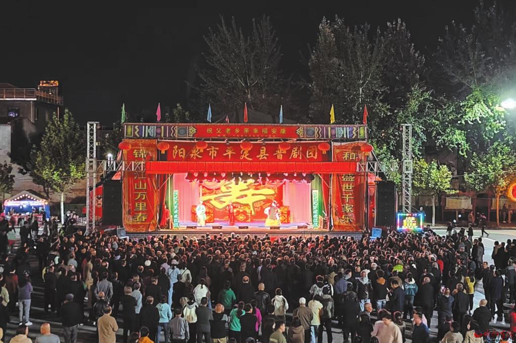 1984年的風(fēng),裹著磚石灰土的氣息,吹拂了整個(gè)村莊。那座正在建起的戲臺(tái),是全村人踮腳盼望的大事。碩大的水泥樓板還帶著潮氣,成堆的磚瓦石塊堆在一起,被我們這群孩童視為天然的樂(lè)園。那時(shí),我才五歲,跟著伙伴們?cè)诮ú亩牙锱郎吓老拢阖堌垥r(shí)把自己埋進(jìn)稻草堆,過(guò)家家時(shí)就用碎磚當(dāng)碗碟,連夢(mèng)里都在盼著戲臺(tái)快點(diǎn)建起來(lái),好讓鑼鼓聲敲醒日子里的平淡。戲臺(tái)建好后,巍峨雄壯,成為村里的地標(biāo)性建筑。時(shí)逢農(nóng)歷五月十三過(guò)廟會(huì),天還沒(méi)亮,戲場(chǎng)里就響起了搬動(dòng)板凳的聲響。有人拖著長(zhǎng)條凳,有人搬著小馬扎,還有人壘起三塊青磚當(dāng)座位,自發(fā)地排出整整齊齊的觀眾席,像給戲臺(tái)圍了圈暖烘烘的圍巾。我和二毛攥著媽媽給的零花錢,早早就到戲場(chǎng)遛了一圈又一圈,鼻尖先于耳朵捕捉到崞陽(yáng)炸麻葉的香。金黃的麻葉在油鍋里翻卷,酥脆的聲響混著油香飄得老遠(yuǎn),饞得我們直咽口水。收到看戲口信的親戚們從鄰村趕來(lái),手里串著麻葉當(dāng)伴手禮,進(jìn)門就被大燴菜、剛出鍋的包子騰騰的熱氣裹住身體,媽媽一邊招呼著“多住幾天”,一邊給我塞碗涼粉皮,酸辣涼爽滑嫩的滋味,是廟會(huì)獨(dú)有的鮮香。晚上和親戚們擠在門板臨時(shí)搭建的床上嘰嘰喳喳聊到半夜,日子是那么的熱氣騰騰!暮色一沉,鑼鼓銅器聲準(zhǔn)時(shí)炸響,像撒了把火星子,瞬間點(diǎn)燃了戲場(chǎng)。全家老少踩著聲響往戲場(chǎng)趕,黑壓壓的人群把戲臺(tái)圍得水泄不通,賣花頭繩的、爆玉米花的小攤前擠滿了孩子。我和二毛最是忙活,一會(huì)兒溜到后臺(tái)看演員化妝,花旦們滿頭珠翠在燈光下閃閃亮亮,描蛾眉、貼花黃、點(diǎn)朱唇的手輕輕巧巧,那身繡著金線的行頭,讓我恨不能鉆進(jìn)鏡子里替她們穿上;一會(huì)兒又蹲到戲臺(tái)角,看老生甩著水袖唱得字正腔圓,看武生翻著筋斗落地?zé)o聲,文場(chǎng)的胡琴拉得人心里發(fā)顫。臺(tái)下的大人們看得入迷,年輕的姑娘小伙在暗處遞著眼色,夜色把悄悄話裹得嚴(yán)嚴(yán)實(shí)實(shí),說(shuō)不定哪段緣分,就從這戲臺(tái)下的眼波流轉(zhuǎn)里生了根。老姨姨帶著比我大三歲的小姨姨來(lái)家里做客看戲,我樂(lè)開(kāi)了花。對(duì)于小姨姨來(lái)說(shuō)可能是童年的一場(chǎng)“心有余悸”,因?yàn)樗恋男〖t皮鞋被我霸占在腳上,任她哭得悲悲戚戚,任大人們?cè)趺春?,我就打定一個(gè)主意——不脫!我太喜歡這雙紅皮鞋了,穿在腳上真神氣!看她哭得那么嘰嘰歪歪,我心里還很想不明白,比我大三歲是大孩子了哭啥?吃完飯,小姨姨逮著機(jī)會(huì)搶回皮鞋套在腳上,拉著老姨姨說(shuō)啥也不看戲了,鬧著回家去了。戲班的演員們吃派飯,是我最盼望的差事。媽媽把飯菜擺得滿滿一桌,我就揣著滿心好奇,一路小跑去戲臺(tái)的后臺(tái)叫“戲伢”??粗读藠y的演員們和尋常人一樣吃飯,我總?cè)滩蛔《⒅齻兊拿佳劭矗倥芑貞蚺_(tái)前琢磨:剛剛唱青衣的,是不是就是那個(gè)笑起來(lái)有酒窩的姐姐?媽媽總說(shuō)我小時(shí)候活潑,愛(ài)湊熱熱鬧鬧的場(chǎng),可她不知道,我湊的不是熱鬧,是戲里戲外那些亮晶晶的時(shí)光。后來(lái)有個(gè)豫劇團(tuán)來(lái)村里,唱的是《風(fēng)雨行宮》。聽(tīng)?wèi)T了晉劇的婉轉(zhuǎn),第一次聽(tīng)豫劇的鏗鏘,竟覺(jué)得每個(gè)字都砸在心上。