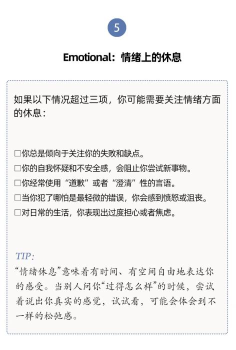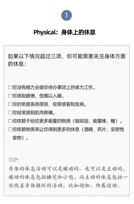 有內(nèi)科醫(yī)生根據(jù)研究和臨床經(jīng)驗,提出了7種類型的休息方式,幫助我們確定最需要哪一種。