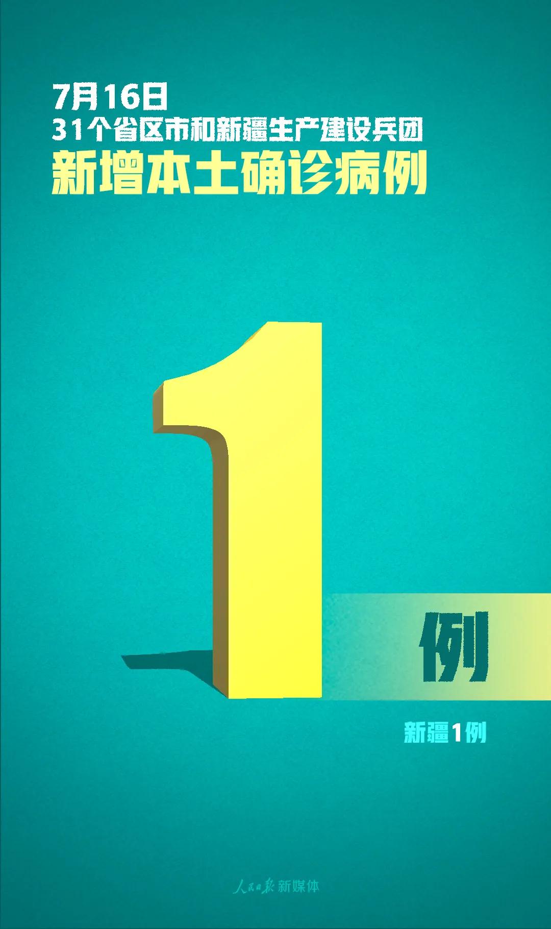 7月16日0—24時(shí),31個(gè)?。ㄗ灾螀^(qū)、直轄市)和新疆生產(chǎn)建設(shè)兵團(tuán)報(bào)告新增確診病例10例,其中境外輸入病例9例(廣東4例,上海1例,江蘇1例,山東1例,廣西1例,陜西1例),本土病例1例(在新疆);無(wú)新增死亡病例;新增疑似病例1例,為境外輸入病例(在上海)。