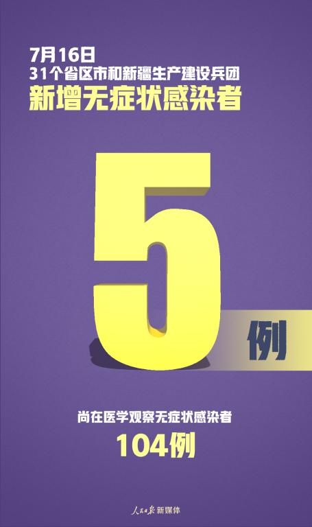 31個(gè)?。ㄗ灾螀^(qū)、直轄市)和新疆生產(chǎn)建設(shè)兵團(tuán)報(bào)告新增無(wú)癥狀感染者5例(境外輸入2例);當(dāng)日無(wú)轉(zhuǎn)為確診病例;當(dāng)日解除醫(yī)學(xué)觀察5例(境外輸入4例);尚在醫(yī)學(xué)觀察無(wú)癥狀感染者104例(境外輸入79例)。