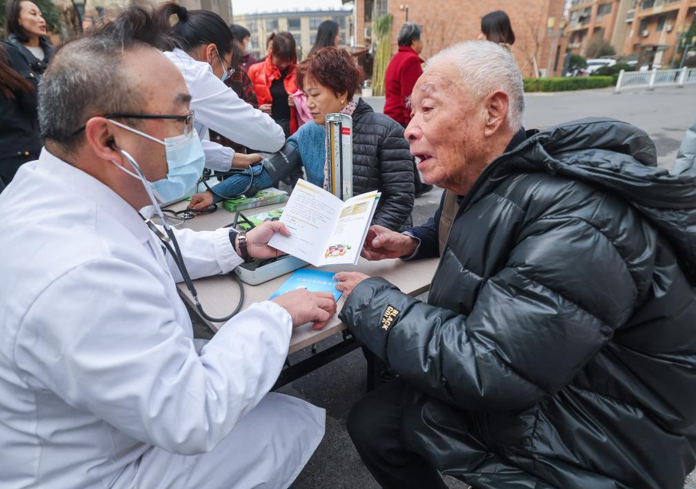 2023年12月13日,在浙江省湖州市吳興區(qū)道場(chǎng)鄉(xiāng)浮玉社區(qū)內(nèi),藥店藥劑師給居民普及安全用藥知識(shí)。新華社記者徐昱 攝