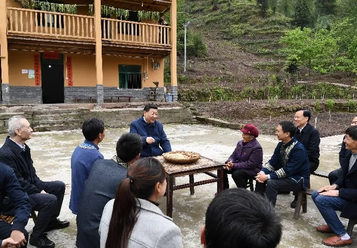 湖南湘西十八洞村困難群眾施成富家門前的空地,成了總書記召開“現(xiàn)場座談會”的場地。他同村民圍坐在一起商量脫貧致富奔小康之策。