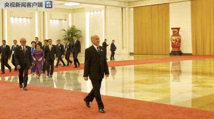 △前來(lái)與習(xí)近平會(huì)面的柬埔寨國(guó)王西哈莫尼。(央視記者許永松拍攝)