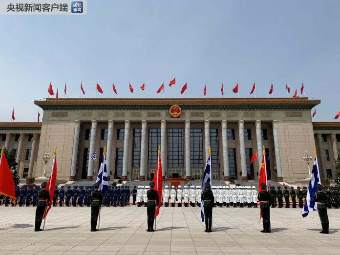 △習(xí)近平舉行儀式歡迎希臘總統(tǒng)訪華。