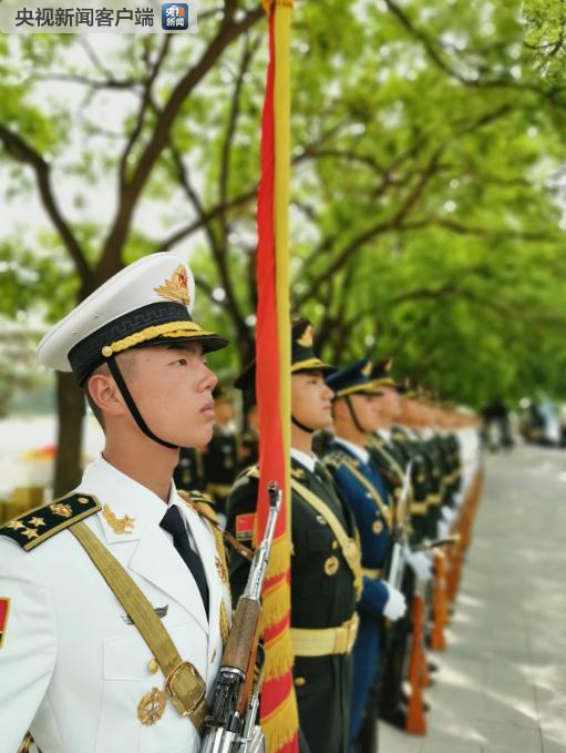 △三軍儀仗隊(duì)正在列隊(duì)。(央視記者荊偉拍攝)