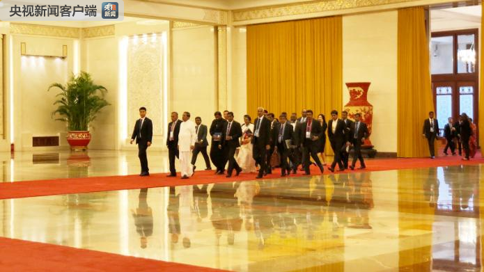 △斯里蘭卡總統(tǒng)西里塞納率團(tuán)抵達(dá)人民大會(huì)堂與習(xí)近平會(huì)面。(央視記者許永松拍攝)