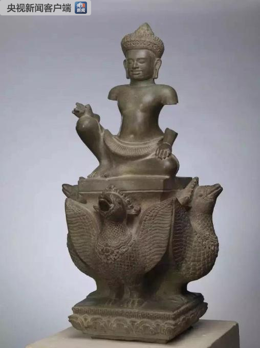 △這是正在中國(guó)國(guó)家博物館展出的石雕伐樓拿神像(10世紀(jì)后半葉)。它是柬埔寨國(guó)家博物館的藏品。