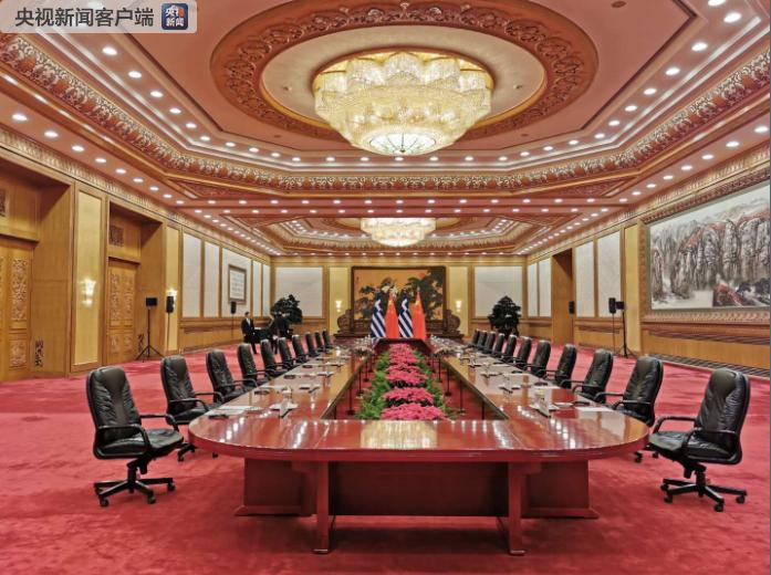 △習(xí)近平和希臘總統(tǒng)帕夫洛普洛斯在人民大會(huì)堂東大廳會(huì)談。(央視記者荊偉拍攝)