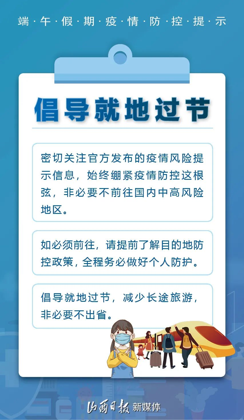 端午假期來臨,人員流動(dòng)和聚集性活動(dòng)將明顯增加,國內(nèi)新冠肺炎疫情防控形勢(shì)依然嚴(yán)峻,全省面臨疫情輸入風(fēng)險(xiǎn)顯著增大。