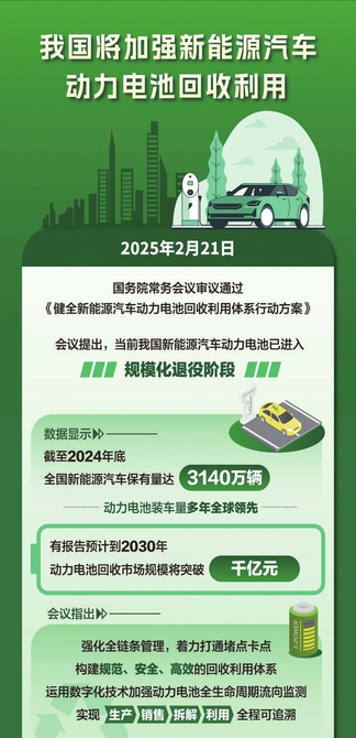 21日召開的國(guó)務(wù)院常務(wù)會(huì)議,審議通過《健全新能源汽車動(dòng)力電池回收利用體系行動(dòng)方案》。會(huì)議指出,當(dāng)前我國(guó)新能源汽車動(dòng)力電池已進(jìn)入規(guī)?;艘垭A段,全面提升動(dòng)力電池回收利用能力水平尤為重要。