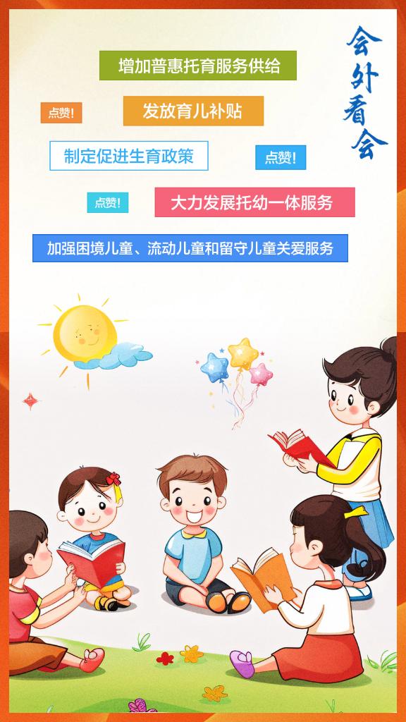 新華社北京3月8日電 孩子是祖國的花朵。制定促進(jìn)生育政策,發(fā)放育兒補(bǔ)貼,大力發(fā)展托幼一體服務(wù),增加普惠托育服務(wù)供給……今年政府工作報(bào)告中關(guān)注孩子的這些提法,會(huì)外群眾怎么看?