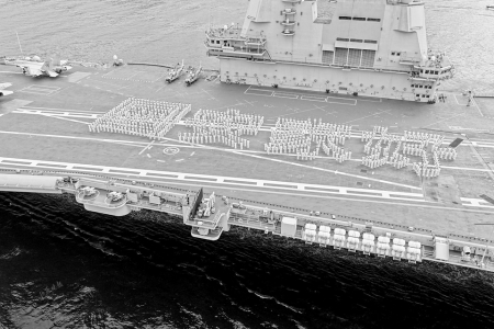 3日上午8時(shí)許,山東艦和3艘屬艦組成縱隊(duì)隊(duì)形,在香港特區(qū)政府船隊(duì)、駐香港部隊(duì)艦艇、直升機(jī)伴航伴飛下,駛?cè)刖S多利亞港。山東艦飛行甲板上,艦載戰(zhàn)斗機(jī)、直升機(jī)列陣,700余名海軍官兵身著白色軍裝,列隊(duì)排出“國(guó)安家好”4個(gè)大字,表達(dá)愛(ài)國(guó)愛(ài)港的濃濃深情和對(duì)香港同胞的美好祝福。海上,香港特區(qū)消防船用“水門禮”歡迎編隊(duì);空中,香港特區(qū)伴飛直升機(jī)現(xiàn)場(chǎng)直播編隊(duì)進(jìn)港實(shí)況;岸邊的民眾隔海向來(lái)訪官兵揮手致意。按照預(yù)定方案,山東艦和延安艦在維多利亞港西錨地錨泊,湛江艦和運(yùn)城艦??堪捍捃姞I(yíng)碼頭。