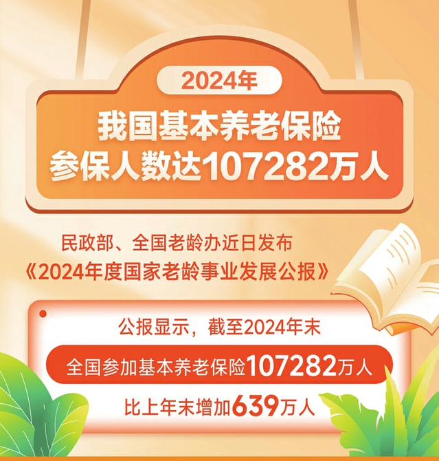 2024年 我國(guó)基本養(yǎng)老保險(xiǎn)參保人數(shù)達(dá)107282萬人