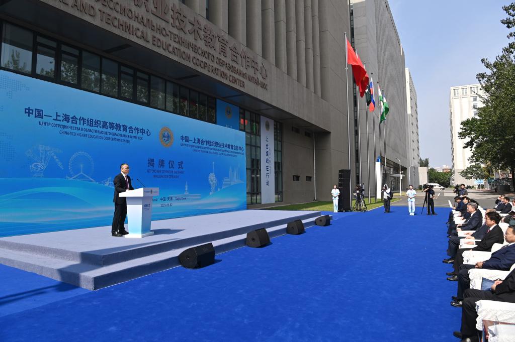 這是9月2日拍攝的中國—上海合作組織職業(yè)技術(shù)教育合作中心揭牌儀式現(xiàn)場。新華社記者 李然 攝