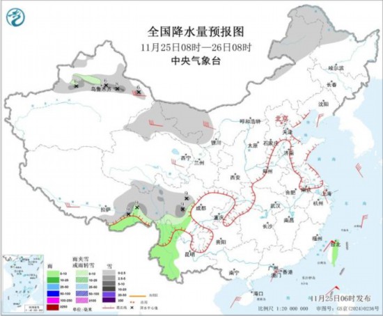 全國降水量預(yù)報圖(11月25日08時-26日08時)