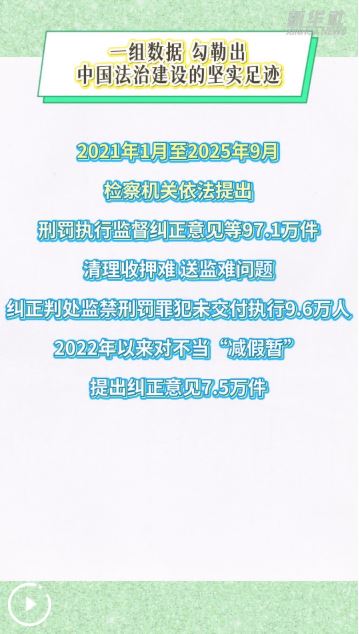 一組數(shù)據(jù),勾勒出中國法治建設(shè)的堅(jiān)實(shí)足跡:2021年1月至2025年9月,檢察機(jī)關(guān)依法提出刑罰執(zhí)行監(jiān)督糾正意見等97.1萬件;清理收押難、送監(jiān)難問題,糾正判處監(jiān)禁刑罰罪犯未交付執(zhí)行9.6萬人;2022年以來對(duì)不當(dāng)“減假暫”提出糾正意見7.5萬件……