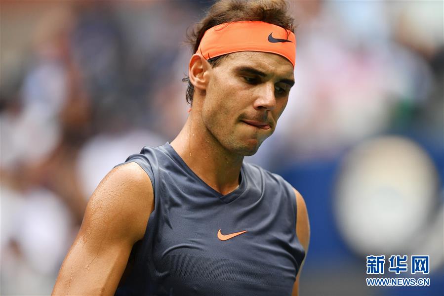 9月7日,納達爾在比賽中。 當(dāng)日,在2018美國網(wǎng)球公開賽男單半決賽中,西班牙選手納達爾在大比分0比2落后時因傷退賽,阿根廷選手德爾波特羅晉級決賽。 新華社記者劉杰攝