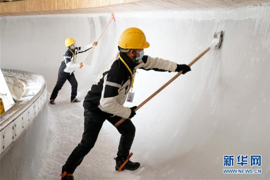 3月10日,我國首條雪車雪橇賽道——北京冬奧會延慶賽區(qū)國家雪車雪橇中心賽道完成制冰工作。北京冬奧會期間,國家雪車雪橇中心將承擔(dān)雪車、鋼架雪車、雪橇三個項目的全部比賽。 新華社發(fā)