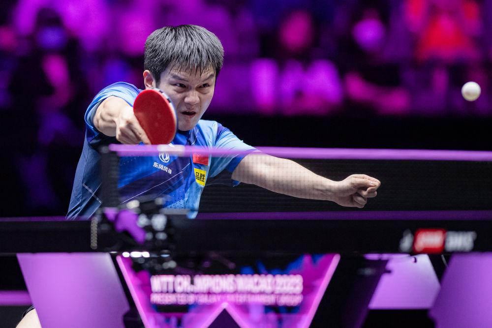 4月20日,樊振東在比賽中回球。新華社記者 張金加 攝