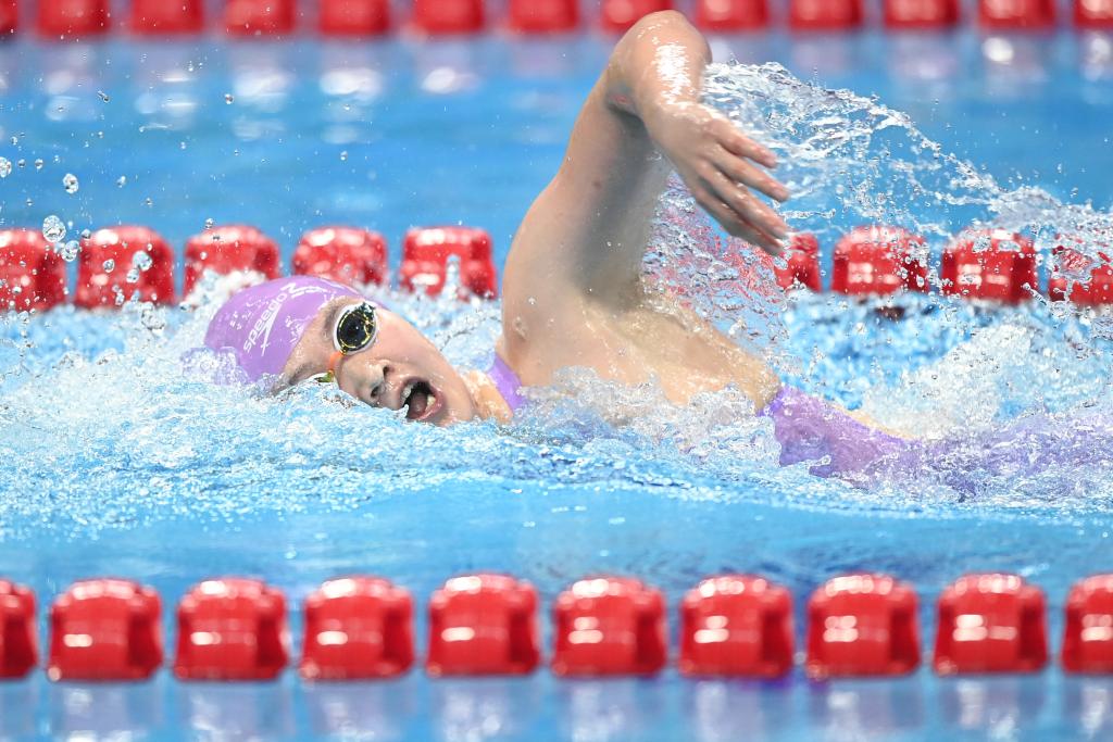 9月24日,中國隊(duì)選手李冰潔以15分51秒18破賽會(huì)紀(jì)錄的成績摘得女子1500米自由泳金牌。