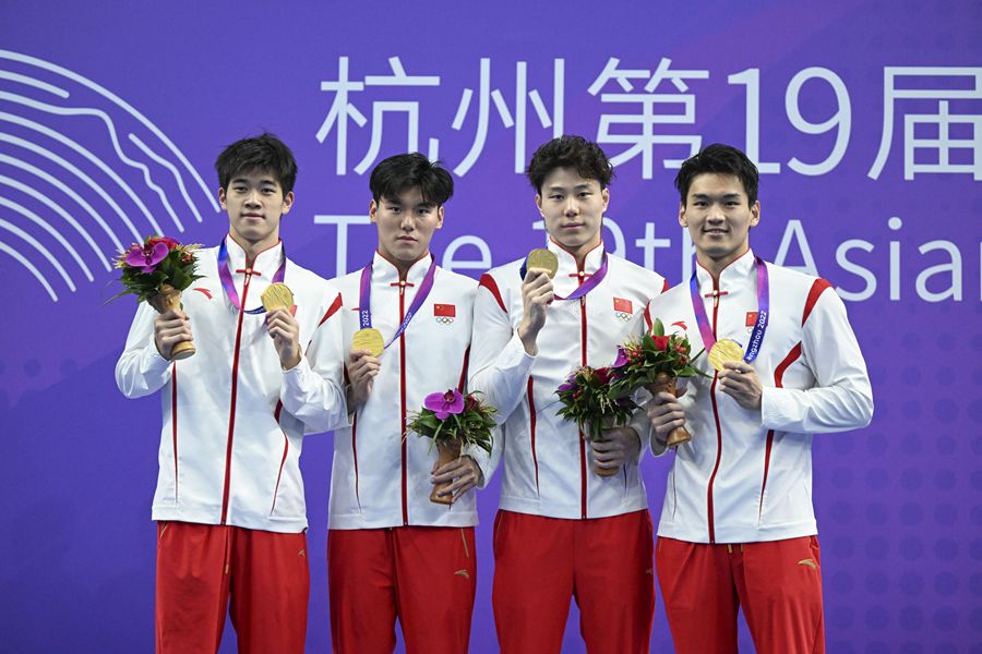 9月26日,在杭州亞運(yùn)會(huì)男子4×100米混合泳接力決賽中,中國隊(duì)奪得金牌,同時(shí)以3分27秒01的成績刷新亞洲紀(jì)錄。