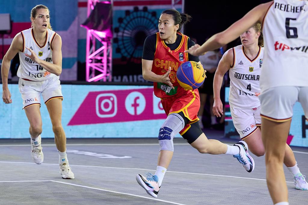 6月3日,中國隊(duì)球員王麗麗(中)在2023國際籃聯(lián)三人籃球世界杯女子組四分之一決賽中突破。新華社發(fā)(喬治斯·施耐德攝)