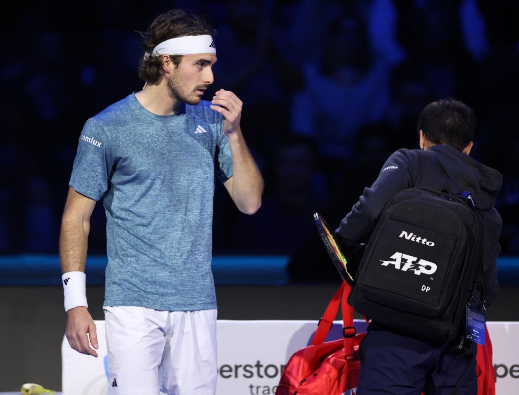 11月14日,齊齊帕斯(左)在決定退賽后。新華社發(fā)(阿爾貝托·林格里亞攝)