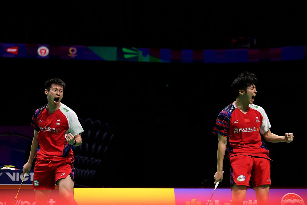 第四場是兩隊第二雙打何濟霆/任翔宇、菲克里/毛拉納之間的較量。中國組合充分發(fā)揮了他們網(wǎng)前快速連貫的特點,在全場觀眾助威聲中,以21:11、21:15拿下這場決定性勝利。國羽時隔六年再捧湯杯。