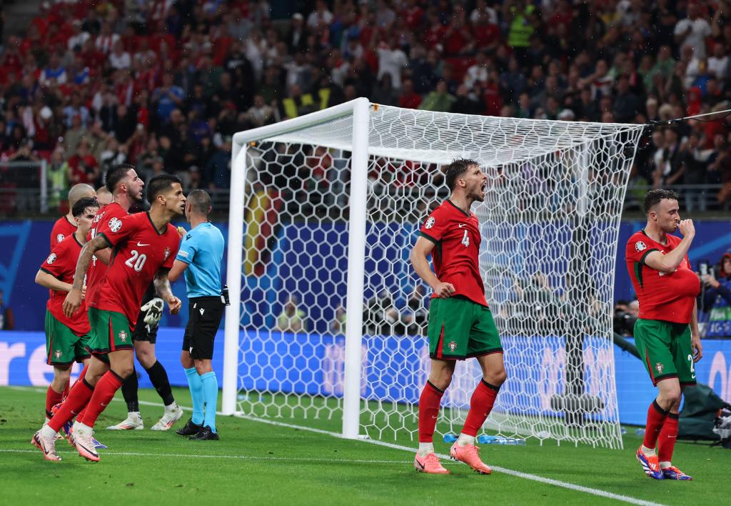 葡萄牙隊與捷克隊的比賽上半時,雙方均未有建樹。第62分鐘,捷克隊打破僵局,中場球員普羅沃德一記世界波破門。7分鐘后,捷克隊門前出現(xiàn)險情,慌亂之中,后衛(wèi)赫拉納克不慎自擺烏龍,葡萄牙隊追平比分。