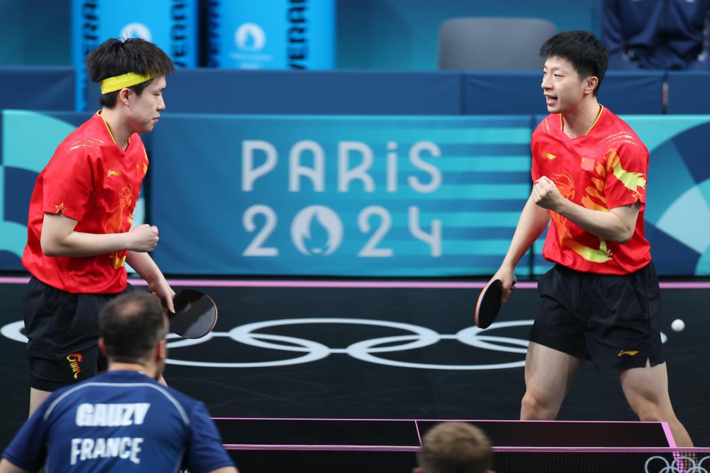 8月8日,中國組合馬龍(右)/王楚欽在比賽中。新華社記者 劉續(xù) 攝
