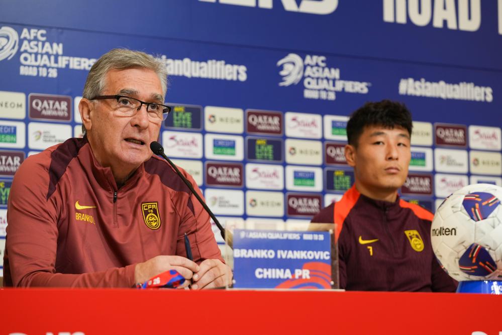 9月4日,中國隊主教練伊萬科維奇(左)在發(fā)布會上。新華社記者 張笑宇 攝